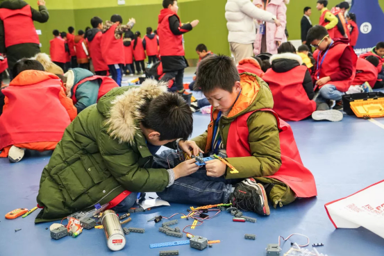 上午十点钟,所有参赛选手就位,开始机器的制作、编程和测试。我校小学体育馆和小学食堂人头攒动,参赛选手团结协作,有条不紊地投入到了参赛作品的制作中。制作结束后,他们自觉排队,有序地在比赛场地进行了测试,根据测试结果再进行调试。有些参赛选手的作品一蹴而就,参赛选手的神情也由严肃紧张转为喜不自禁;有些参赛选手的作品虽然未能一次就测试成功,但他们也丝毫没有气馁,不断调整,反复试验,脸上始终洋溢着坚定和自信。