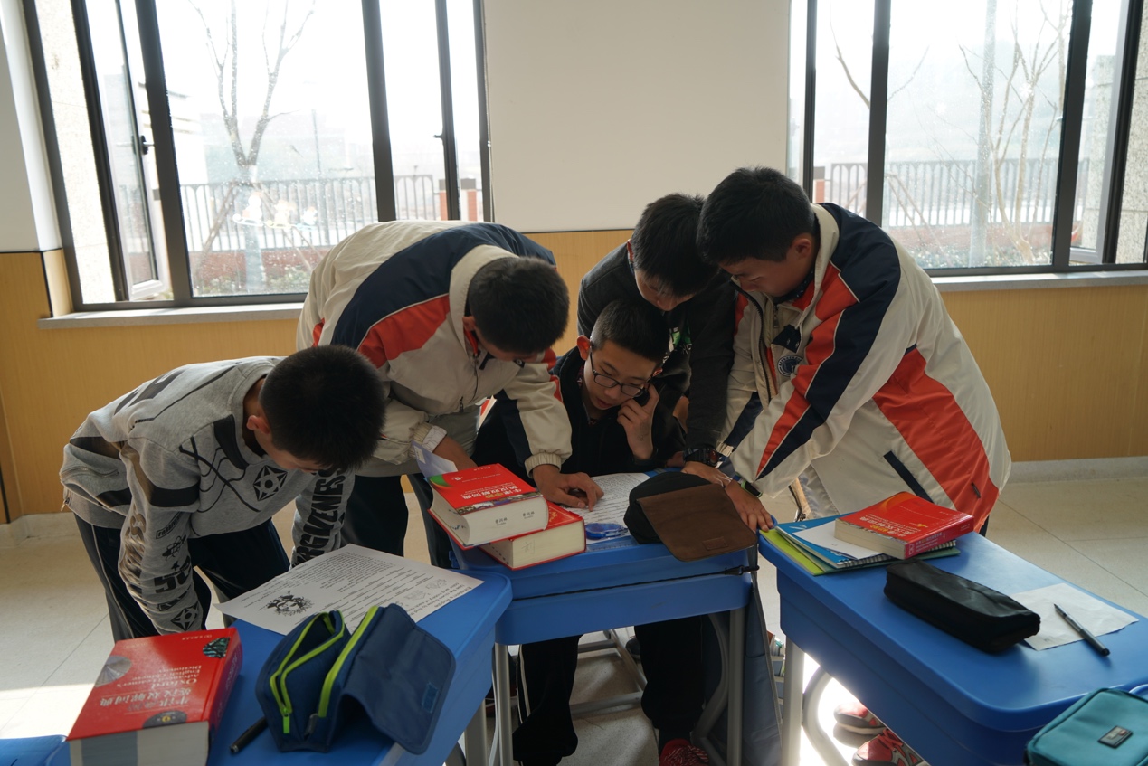 1月24日下午,如果你看到一群孩子人手一本英语字典却依然眉头紧锁,不要惊讶,他们一定是被英语字谜难住啦;如果你看见一群孩子风风火火地穿梭在教学楼里,用自己流利的口语问各科老师奇怪的问题,不要奇怪,他们一定是在完成英语调查问卷呢;如果你看到一个孩子惊呼“啊呀,你说中文啦”,不要疑惑,因为我们英语活动的规则是只能说英语……