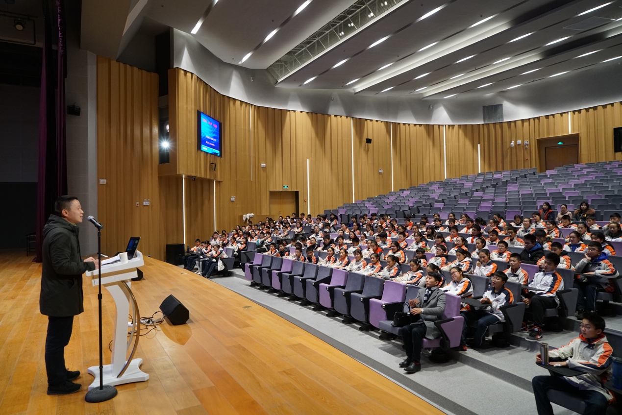 聆听是一种美德,聆听是一种涵养,聆听是一种气度,聆听是一种胸怀。初一年级的孩子天性依旧是活泼好动,但是当他们走进千人剧场,台上的演讲者拿起话筒的那一刻,聆听成为他们统一的动作。1月22日,在《时间安排与文明礼仪》中,他们听到了寒假规律的生活,听到了高效利用时间法则,听到了不论何时何地都要衣冠整、容貌清,听到了“礼”这一亘古不变的传承……在《语文阅读与书法欣赏》中,他们听到了读书原来也有“阶层”,听到了读书是为了理解世界,听到了书法的实用性大于艺术性……在《海洋梦少年梦 中国梦》中,他们听到了海洋的声音,听到了少年的情怀,听到了国家的召唤……