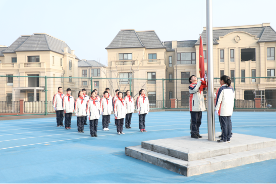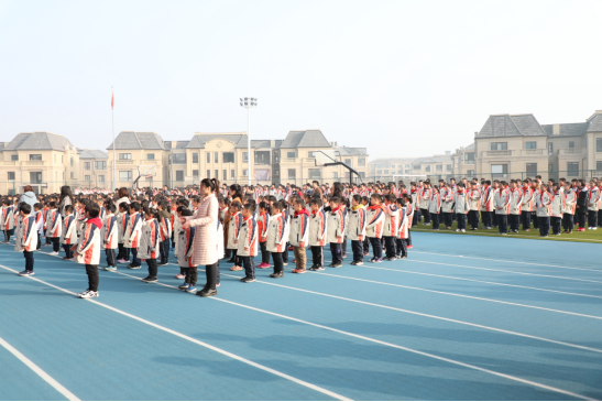 阳春三月,风朗气清,春光明媚。早上,我校师生齐聚小学部操场,参加了第三周升旗仪式,同时也是我校首届外语节的开幕式。开幕式由初一十班的於玺同学用中英文主持,初中部和小学部各有学生做了国旗下的演讲,小学部还献上了英文诗歌朗诵表演。