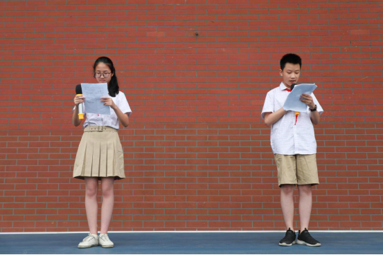 当师生还沉浸在小学生关于梦想与现实的解读时,七年级(6)班的孙小薇、陈梓瑞同学又用双语给全校师生宣讲了自己对奋斗与成功关系的理解。他们在演讲中列举中外名人奋斗不止的事例,鼓励全体同学奋勇拼搏,用汗水挥洒青春,让奋斗成为青春最明亮的颜色!他们说:“‘天行健,君子以自强不息;地势坤,君子以厚德载物。’成功的过程,没有坦途。‘故天将降大任于斯人也,必先苦其心志,劳其筋骨,饿其体肤,空乏其身,行拂乱其所为,所以动心忍性,曾益其所不能’。每一个人要想成就自身的事业,必须树立明确的目标,以坚韧的毅力为支撑,克服重重险阻,方能成就一片天地。生命不止,奋斗不息!”