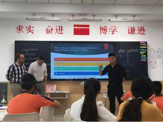 Onthe afternoon, Mr. Han of senior high gave drama demonstration class, whichattracted teachers and foreign teachers from different departments. This coursetaught by Mr. Han mainly aimed to enable students to learn how to expressdifferent feelings in English communication and learn how to achieve empathy. Duringteaching procedures, Mr. Han took various forms of interactive games as thecarrier, so that every student had the opportunity to show himself on thestage. At the same time, he also invited foreign teachers to participate in theactivity and made the shy students slowly become eager to try and learn in therelaxing and happy atmosphere. Mr. Han’s innovative teaching methods was praisedby the teachers.