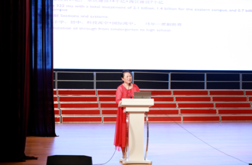 朱善萍校长从学校环境、办学宗旨、课程模式、办学优势和办学成绩等方面进行了全面介绍,让前来参会的考生和家长对南京外国语学校方山分校有了系统的认识和了解。