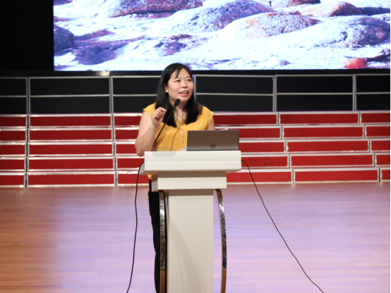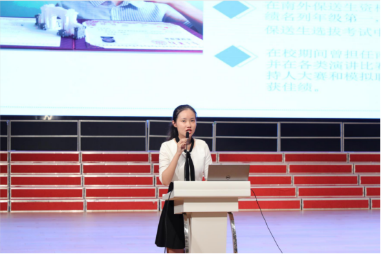 南京外国语学校中学语文高级教师戴霞老师以“点金石”的故事开场,从知己、知彼、知人的角度,勉励同学们树立自信,勇于实践,脚踏实地向目标攀登,努力成为自己人生的“点金石”。