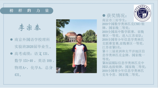 南京外国语学校2020届优秀毕业生李宗泰同学从规划和自我认识、自我选择方面分享了自己的学习经验和感悟。他还结合自身参加信息学竞赛的经历和收获,给南外方山分校的同学们作出了相关的指导和建议。