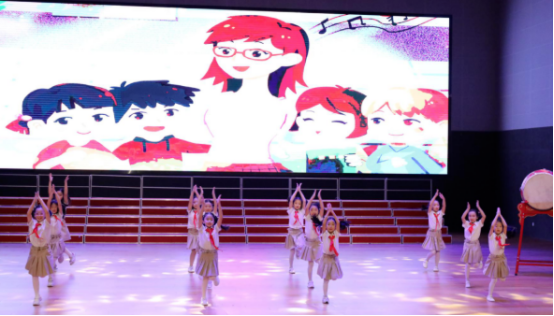 刚进场坐定,孩子们与家长的目光便被舞台上由高年级同学带来的歌舞表演《一年级》吸引。
