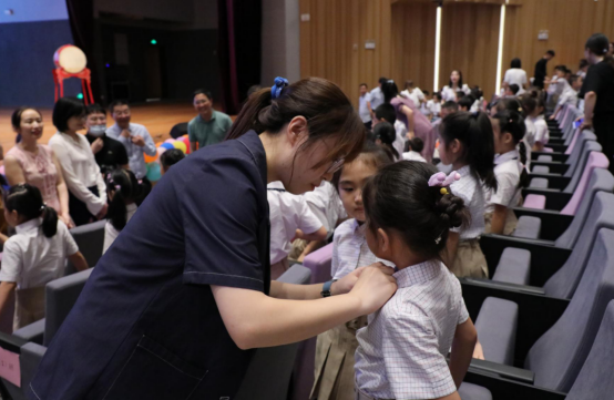 从整洁明亮的教室出发,孩子们跟着老师来到崭新亮丽的千人剧场,开始我们的入学仪式活动。