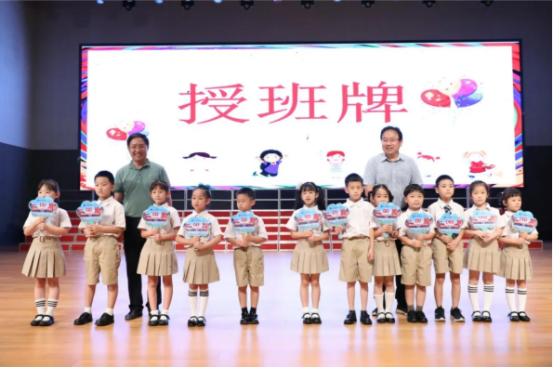 周世东书记和陈礼斌副校长还为新班级的班级代表颁发了班牌。