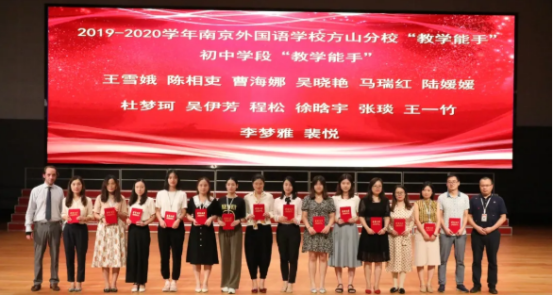 校领导先后为获得2019—2020学年南京外国语学校方山分校“优秀班主任”和“教学能手”的老师们颁发了荣誉证书。