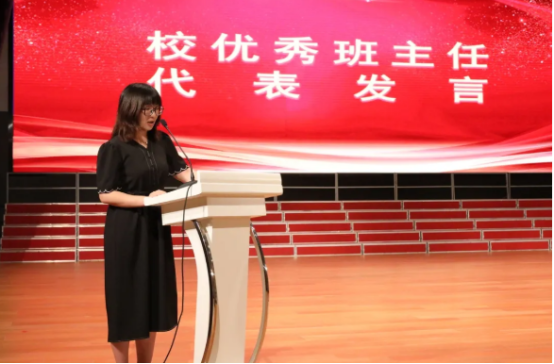Ms. Liu gave a speech on behalf of the outstanding homeroom teachers. She shared her experience with all the staff as a homeroom teacher and encouraged that all the homeroom teachers should remain passionate, calm and innovative to promote students' development, and try to create a brighter future for them.