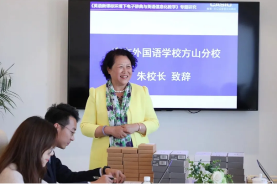On November 9, the special study of "E-Dictionary and English Teaching in the Context of New National Curriculum Standards" and the launch ceremony of the donation of Casio electronic dictionary were held at NFLSFC. Mr. Qiao Yuquan, Chairman of the CEEIA Urban Education Equipment Committee, Mr. He Feng, Secretary of Jiangsu Teaching and Research Office, Li Yuqing, Director of the Electronic Education Department of Casio (China) Trading Co., Ltd., Section Director Tang Jinliang, Director Kong Weiyan, Principal Zhu Shanping from NFLSFC, and Vice Principal Martin as well as some English teachers from junior and senior high schools attended this event.